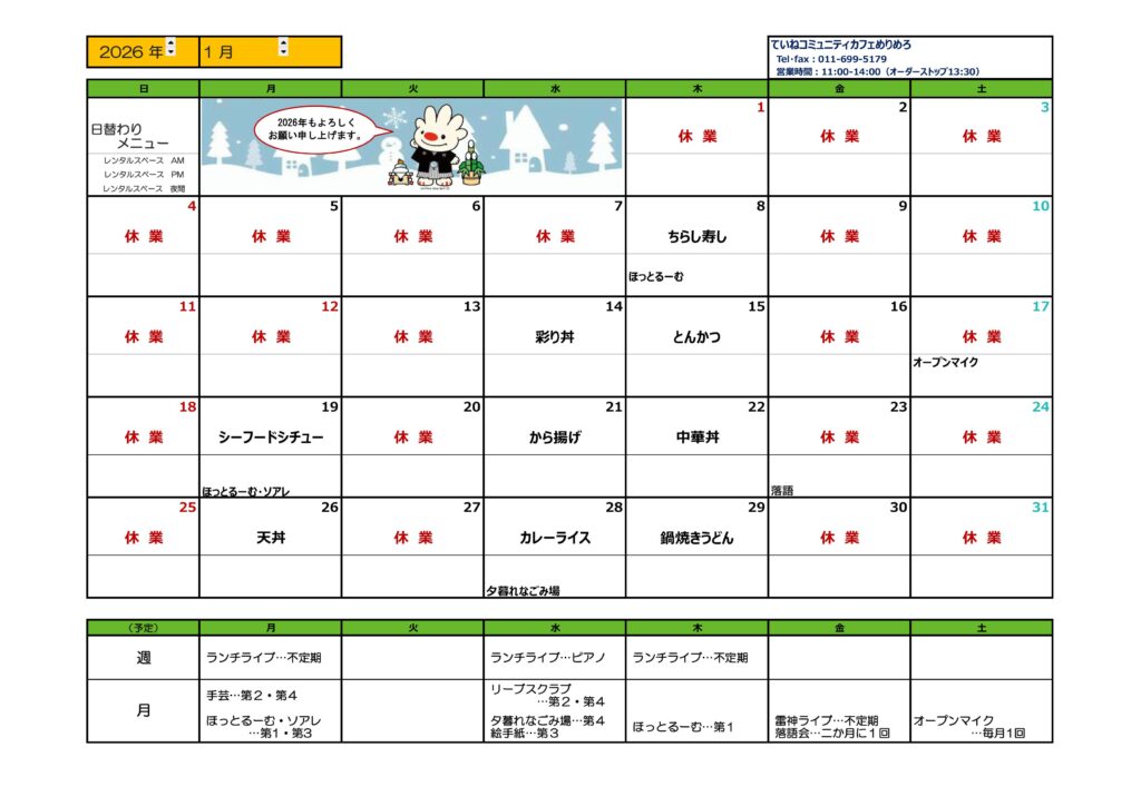 電話/FAX:011-699-5179MAIL:melimelo.teine@gmail.com